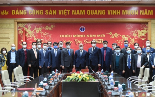 Chiều 9/2, tức 28 Tết Nguyên Đán Tân Sửu, Thủ tướng Nguyễn Xuân Phúc làm việc với lãnh đạo Bộ Y tế về công tác phòng, chống dịch COVID-19, chúc Tết các cán bộ, y bác sĩ, nhân viên ngành y tế đang ngày đêm nỗ lực chống dịch.