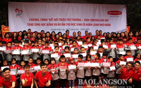 Tặng 100 suất học bổng và áo ấm cho học sinh có hoàn cảnh khó khăn tại Cao Lộc