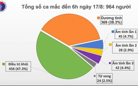 Theo Bộ Y tế, đến 6h sáng 17/8, Việt Nam ghi nhận thêm 2 ca mắc Covid-19 mới tại Hải Dương và Quảng Nam, nâng tổng số ca mắc là 964 ca.