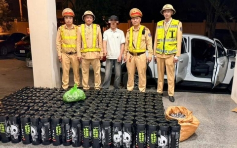 Kiểm tra ô tô bán tải trên đường ĐT331B (Quảng Yên, Quảng Ninh) lúc rạng sáng, CSGT phát hiện xe chở 192 bình nghi khí cười, tạm giữ người và phương tiện...