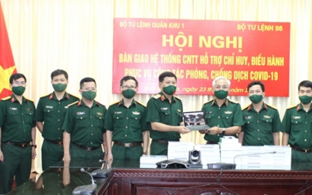 Chiều 23-5, Bộ tư lệnh Quân khu 1 và Bộ tư lệnh 86 (Bộ Quốc phòng) tổ chức Hội nghị bàn giao hệ thống công nghệ thông tin hỗ trợ công tác chỉ huy, điều hành, phục vụ PCD Covid-19.