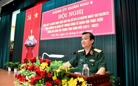 Chiều 4-8, Đảng ủy Quân khu 9 tổ chức Hội nghị tổng kết 10 năm thực hiện Chỉ thị số 572-CT/QUTW ngày 5-10-2012 của Thường vụ Quân ủy Trung ương về Quân...