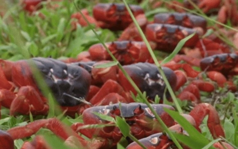 Hàng triệu con cua đỏ tràn ra đường, người dân phải né không giẫm lên chúng