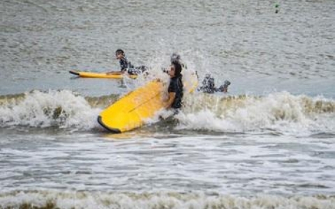 Du khách ra biển lướt sóng trước giờ bão Kalmaegi áp sát