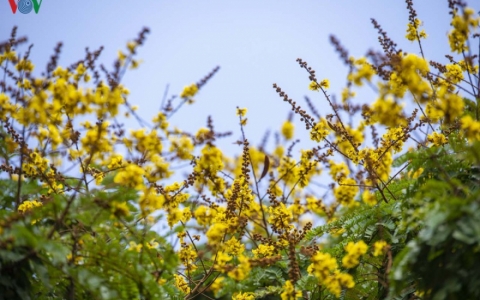 Tháng 3 về, những cây hoa điệp vàng đua nhau bung nở, sắc vàng rực rỡ càng tô điểm cho vẻ đẹp thành phố Huế thêm dịu dàng mộng mơ.