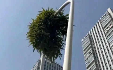 Cây tre mọc xuyên qua cột đèn cao 6m ở Trung Quốc vẫn đâm chồi lá xanh tốt