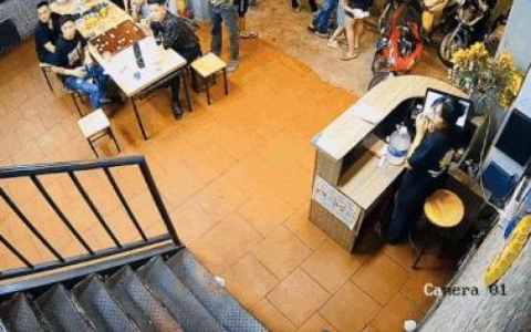 Cô gái trượt chân, ngã ở cầu thang được chủ quán tại Hà Nội kịp đỡ