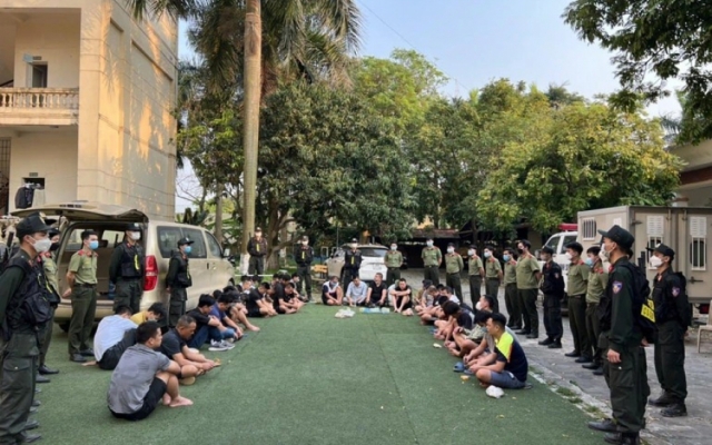 Lực lượng công an triệt phá sới gà quy mô lớn nằm sâu trong trang trại khu dân cư ở thi trấn Thổ Tang, huyện Vĩnh Tường, Vĩnh Phúc và hơn 40 đối tượng đang cá cược.
