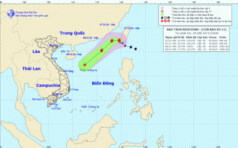 Bão số 11 mạnh cấp 9, giật cấp 11 trên Biển Đông