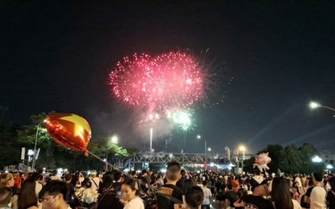 Hàng vạn người "quây kín" sân vận động Mỹ Đình trong đêm pháo hoa rực rỡ