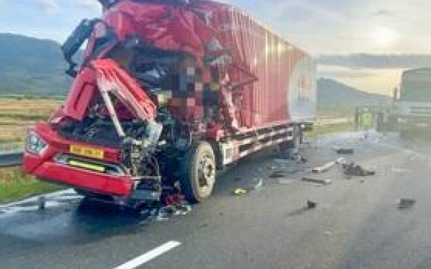 Xe tải lưu thông trên cao tốc Vĩnh Hảo - Phan Thiết bất ngờ tông vào đuôi ô tô chạy cùng chiều phía trước khiến đầu xe biến dạng, tài xế bị thương, kẹt...