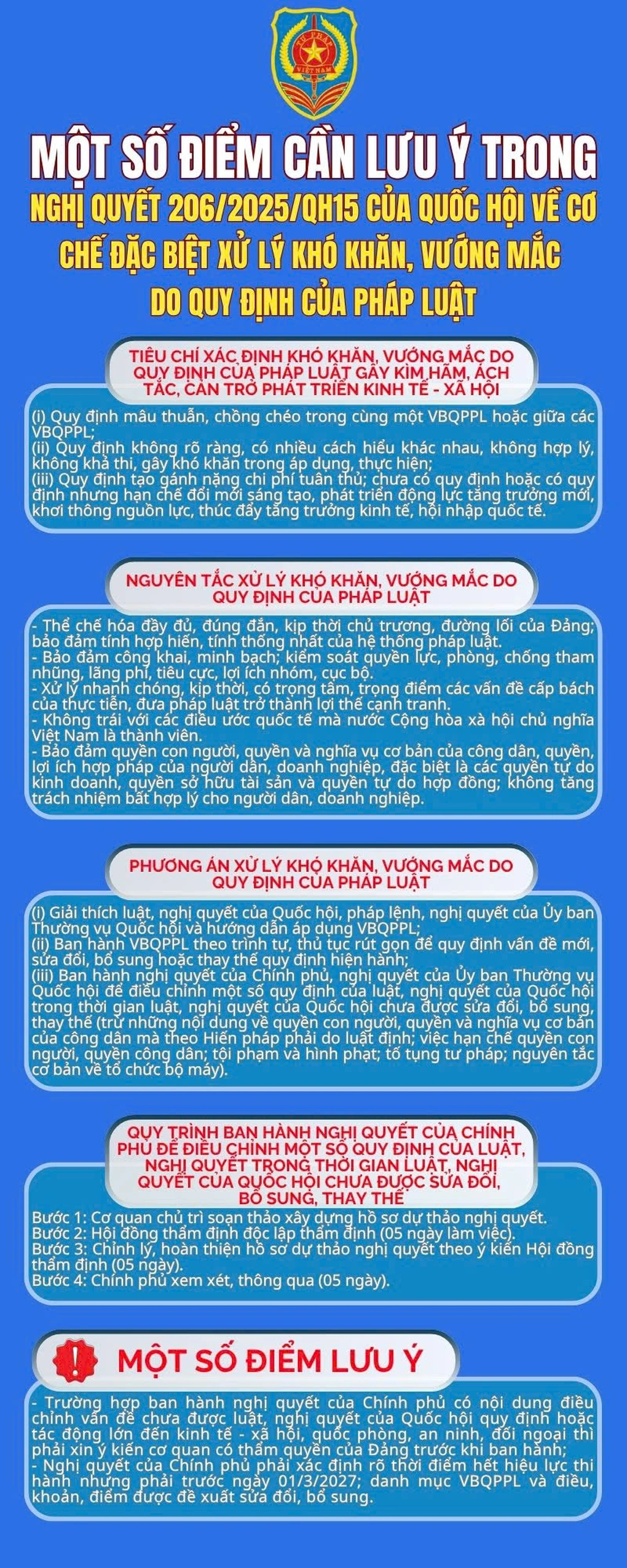 Một số lưu ý trong Nghị quyết 206/2025 của Quốc hội về cơ chế đặc biệt xử lý khó khăn, vướng mắc do quy định của pháp luật (Nguồn: Bộ Tư pháp).