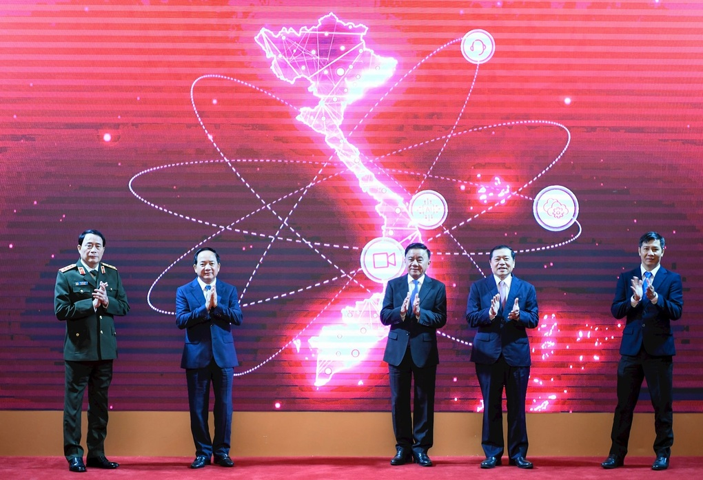 Thường trực Ban Bí thư Trần Cẩm Tú và các lãnh đạo Trung ương tại Lễ ra mắt ứng dụng Tuyên giáo và Dân vận (Ảnh: Như Ý).