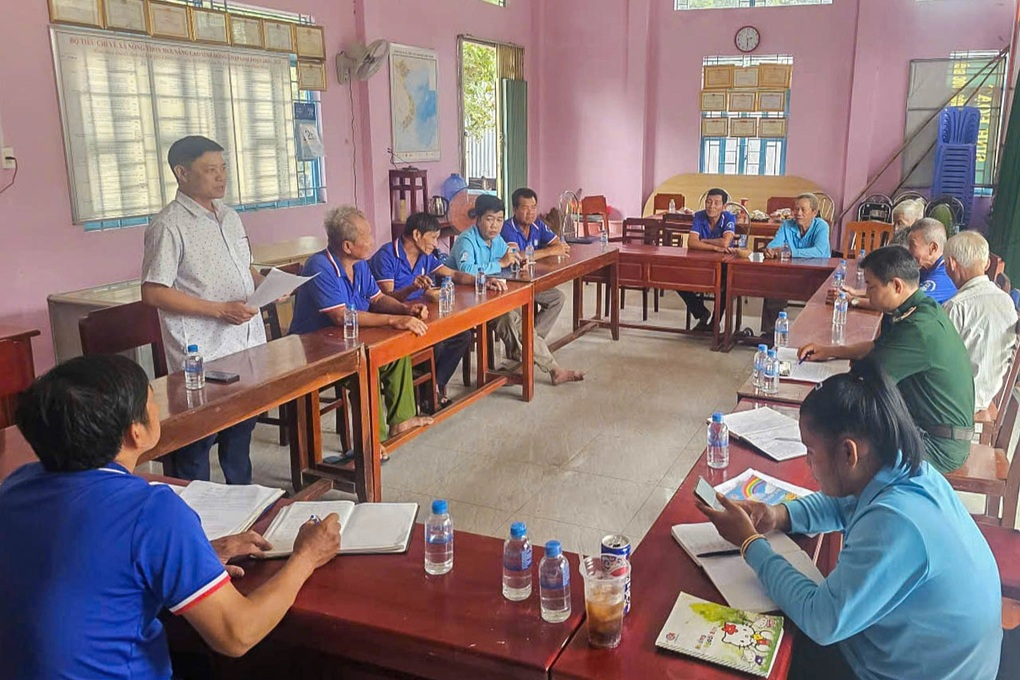 Ông Chung Văn Sum (người đứng) họp thành viên tổ tự quản đường biên, mốc quốc giới trước thời điểm bầu cử (Ảnh: Lê Dũng).