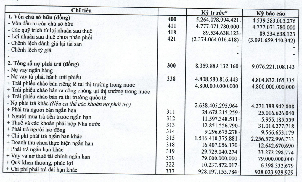 Về cơ cấu tài chính, do thua lỗ khiến vốn chủ sở hữu giảm xuống chỉ còn 4.539 tỷ đồng. Chiều ngược lại, tổng nợ phải trả tăng gần 9% lên mức 9.076 tỷ đồng.