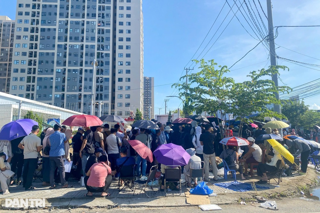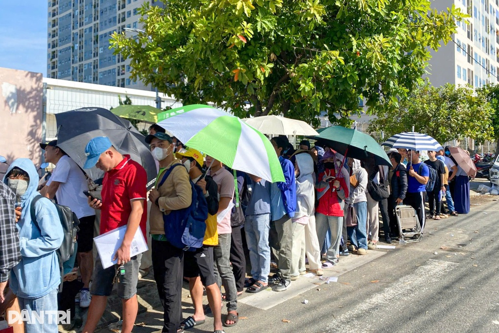 Dòng người đổ về khu vực dự án, kéo dài ra tận đường. Nhiều người mang theo đồ ăn, nước uống, thậm chí ngủ qua đêm để giữ chỗ. Số lượng người tập trung quá đông khiến UBND phường Hải Vân đã cử lực lượng hỗ trợ an ninh tại khu vực tiếp nhận hồ sơ.