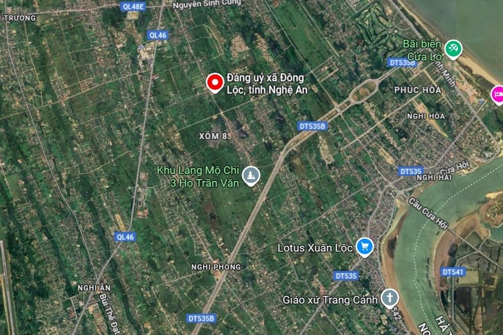 Dự án Trung tâm hành chính tỉnh Nghệ An được chấp thuận vị trí xây dựng tại phường Vinh Lộc và xã Đông Lộc (Ảnh: Google Maps).