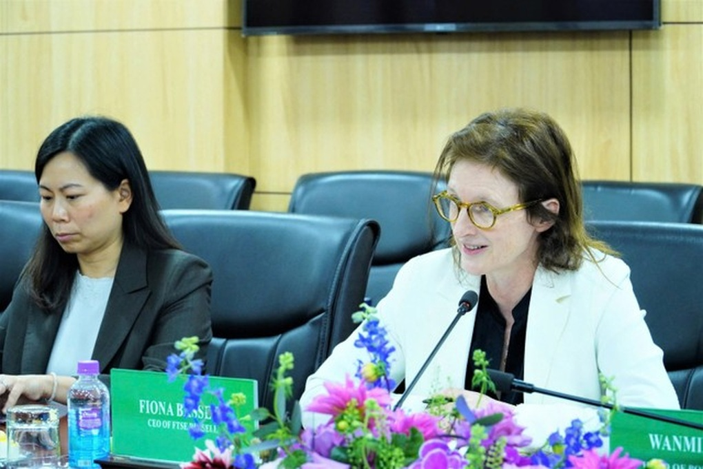 Bà Fiona Bassett, Tổng giám đốc FTSE Russell phát biểu tại buổi làm việc. (Ảnh: UBCKNN cung cấp).