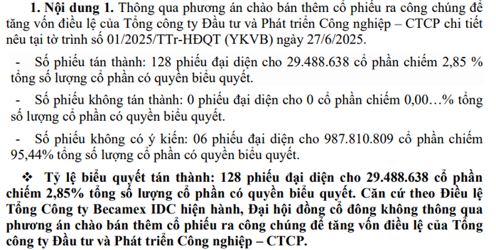 Kết quả này đồng nghĩa với việc không thông qua phương án chào bán thêm cổ phiếu ra công chúng của Becamex IDC.