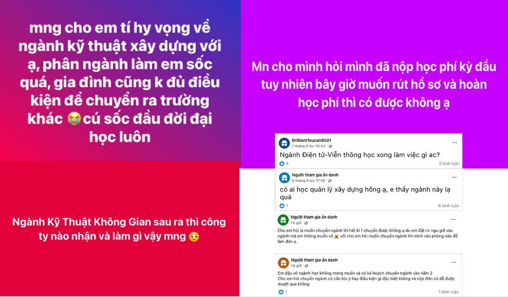 Trong cộng đồng sinh viên, nhiều ý kiến phản ánh việc bị phân ngành không đúng nguyện vọng hoặc tìm hiểu những ngành "mới toanh" sau khi được phân bổ (Ảnh: Chụp màn hình).