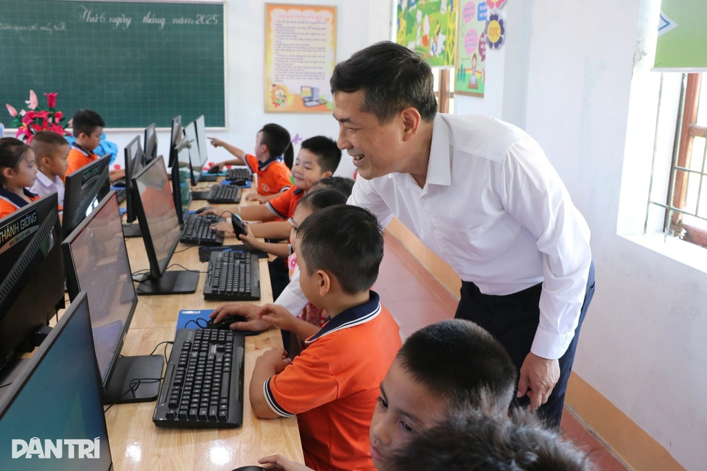 Ông Thái Văn Thành, Giám đốc Sở GD&ĐT Nghệ An kiểm tra phòng tin học Trường Tiểu học Trung Phúc Cường (Ảnh: Hoàng Lam).