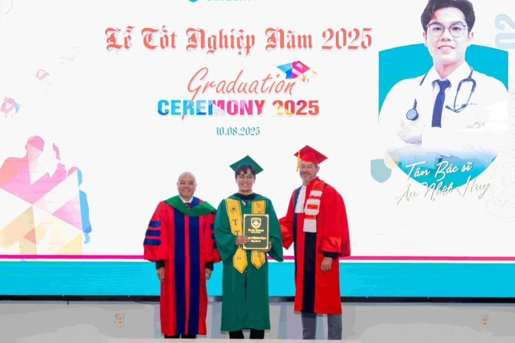 Thí sinh Âu Nhật Huy nhận bằng tốt nghiệp ngành y loại xuất sắc vào tháng 8 vừa qua (Ảnh: TTU).