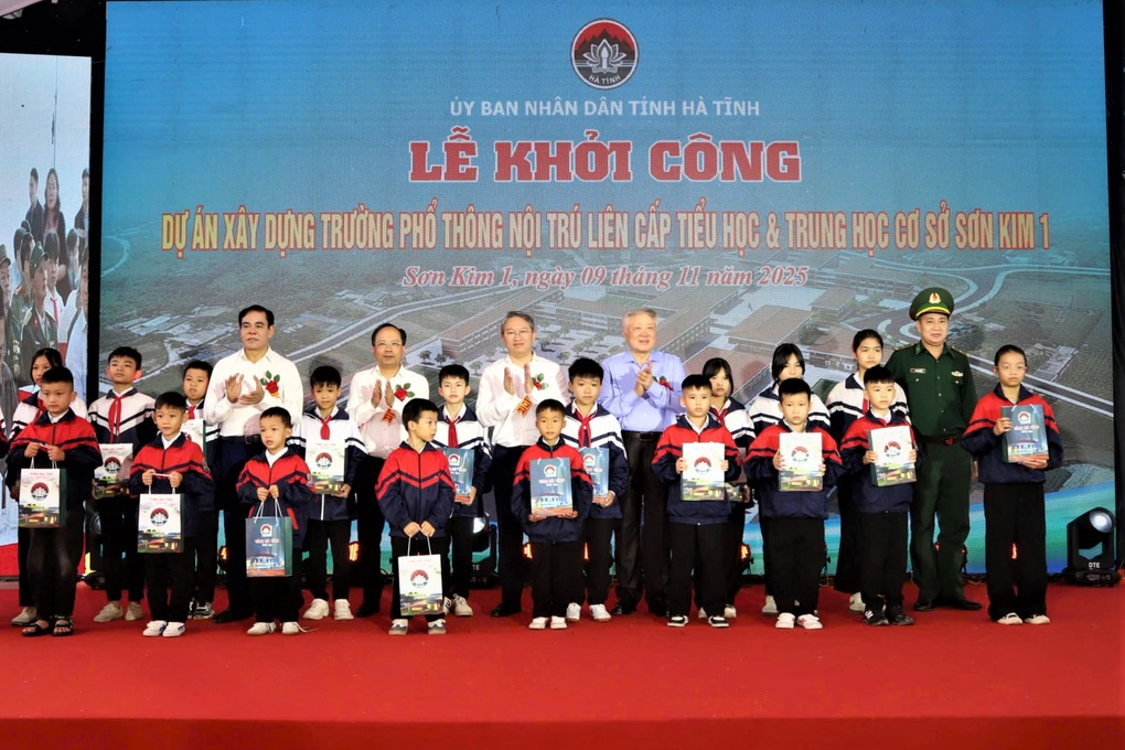 Tại điểm cầu xã Sơn Kim 1 (tỉnh Hà Tĩnh), công trình Trường Phổ thông nội trú liên cấp Tiểu học và THCS Sơn Kim 1 được khởi công với diện tích gần 5ha, tổng vốn đầu tư hơn 140 tỷ đồng.