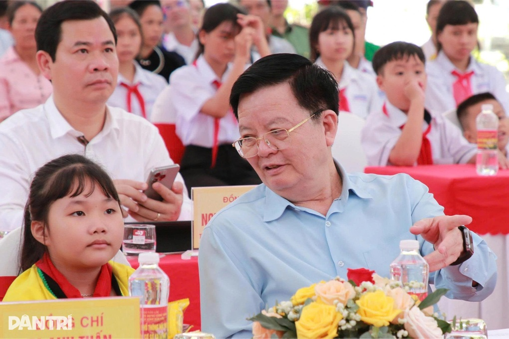 Thượng tướng Phạm Thế Tùng, Thứ trưởng Bộ Công an và lãnh đạo tỉnh Nghệ An khởi công tại Trường Phổ thông nội trú liên cấp TH&THCS Hạnh Lâm (Ảnh: H. Lài).