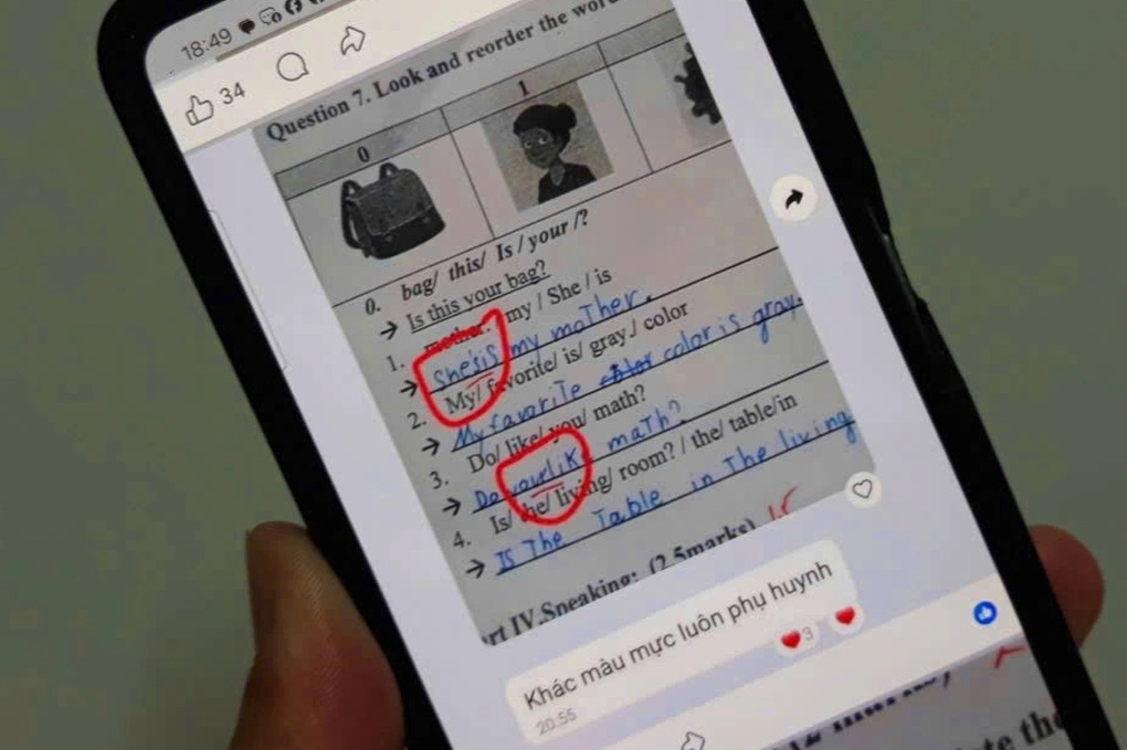 Hình ảnh bài kiểm tra của học sinh bị giáo viên tiếng Anh sửa lại được lan truyền trên mạng (Ảnh: Chụp màn hình).