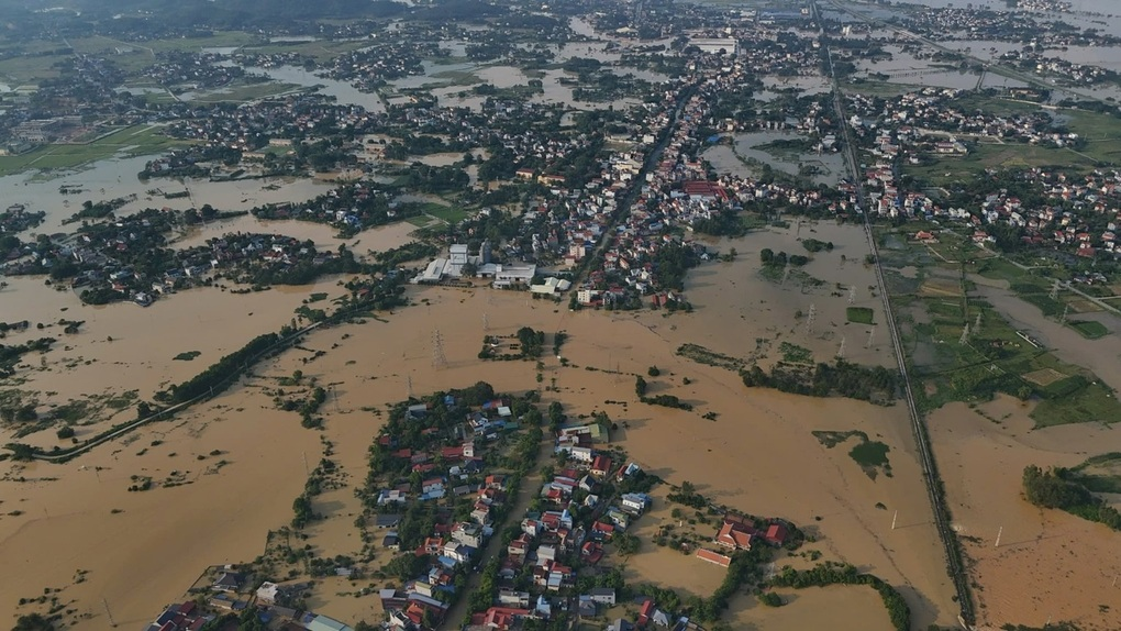 Nhiều xã thuộc khu vực huyện Sóc Sơn (cũ), Hà Nội ngập sâu (Ảnh: CTV).