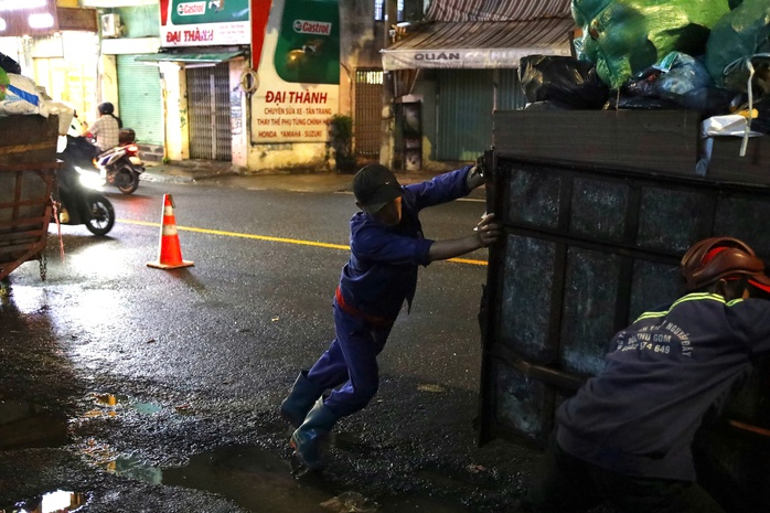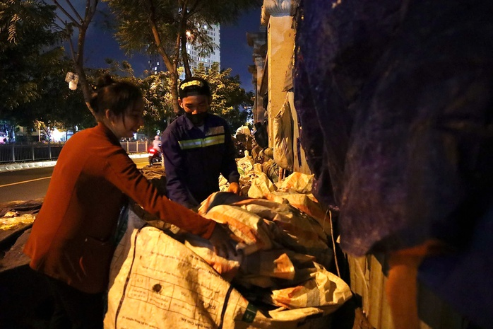 Những người thu gom rác dân lập vất vả trong đêm - Ảnh: CHÍ NGUYÊN