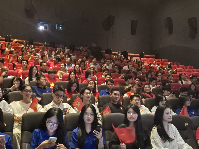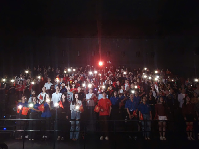 Khán giả cầm cờ đỏ sao vàng cổ vũ trong suất chiếu đặc biệt
