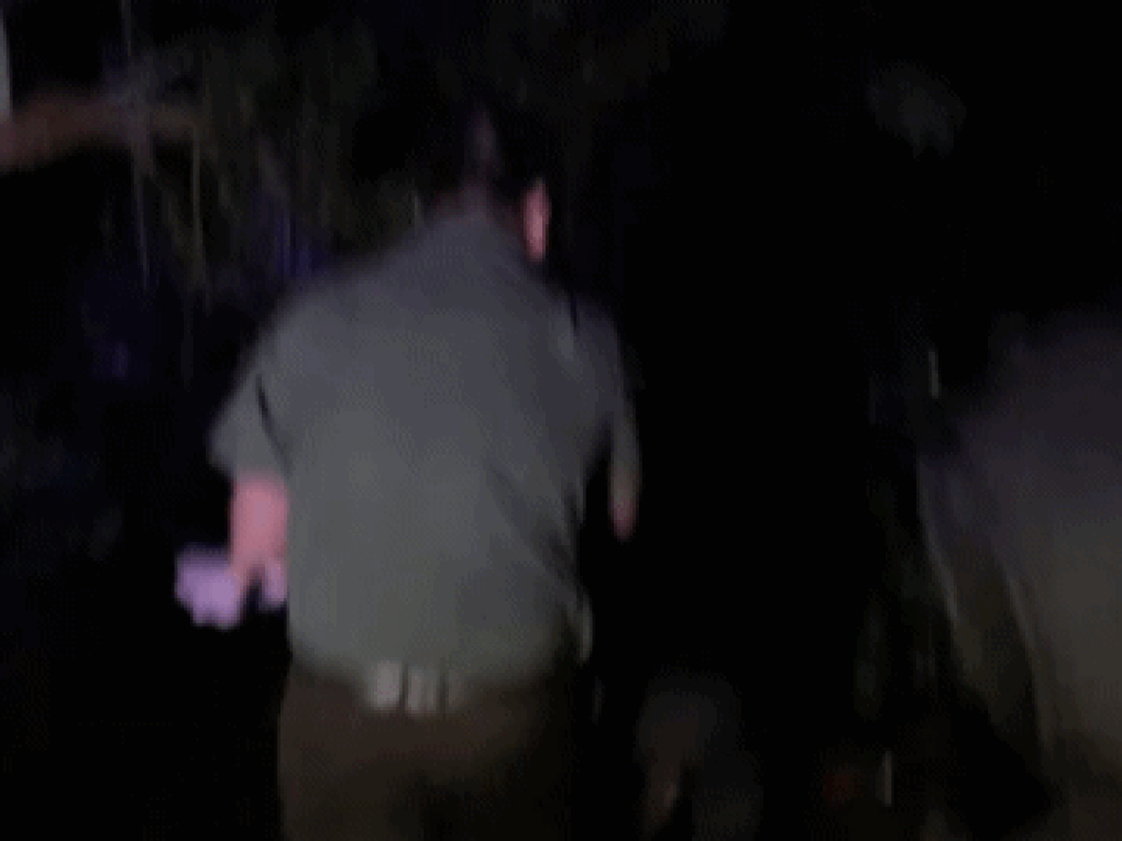 Lực lượng công an xã băng rừng giữa mưa bão đưa cháu bé đi cấp cứu (Ảnh: Cắt từ clip).
