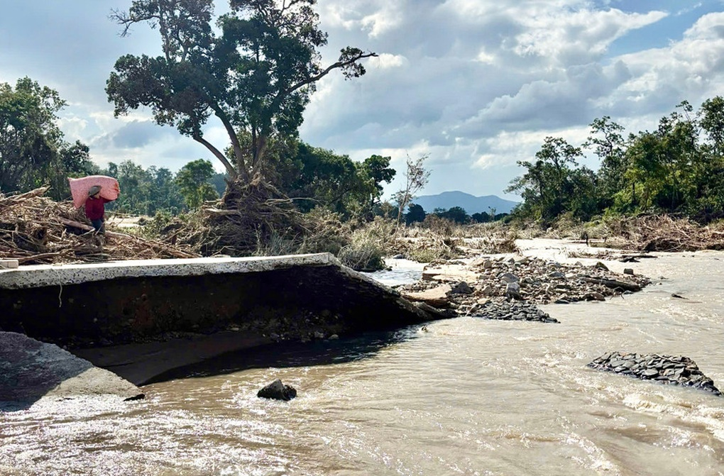 "Mưa lũ phá hỏng tuyến giao thông huyết mạch kết nối làng Hrách với trung tâm xã Sró. Địa phương đang huy động lực lượng khắc phục sự cố và hỗ trợ nhu yếu phẩm cho những người dân đang bị cô lập", ông Sơn nói.