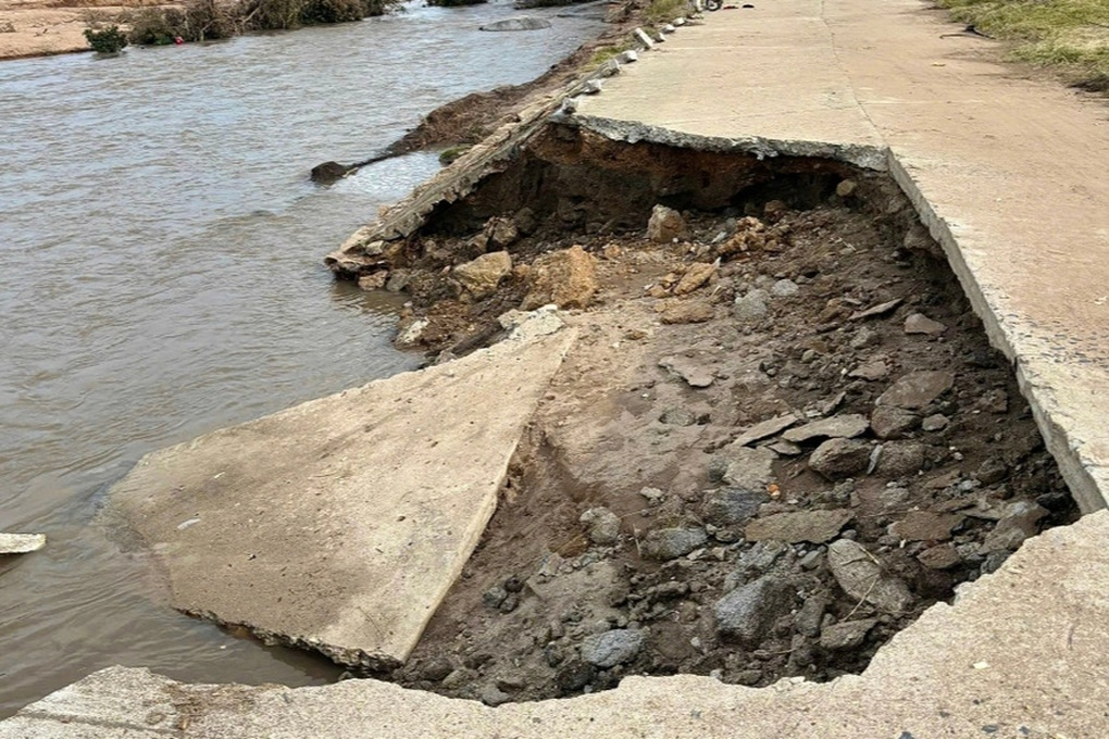 Tuyến đường nêu trên bị sạt lở nghiêm trọng tại 2 vị trí, gây ách tắc giao thông hoàn toàn. Tại Km5+600, cống và nền đường bê tông bị cuốn trôi với chiều dài khoảng 120m. Một vị trí khác, lũ cũng cuốn sạt hơn 50m mặt đường bê tông.