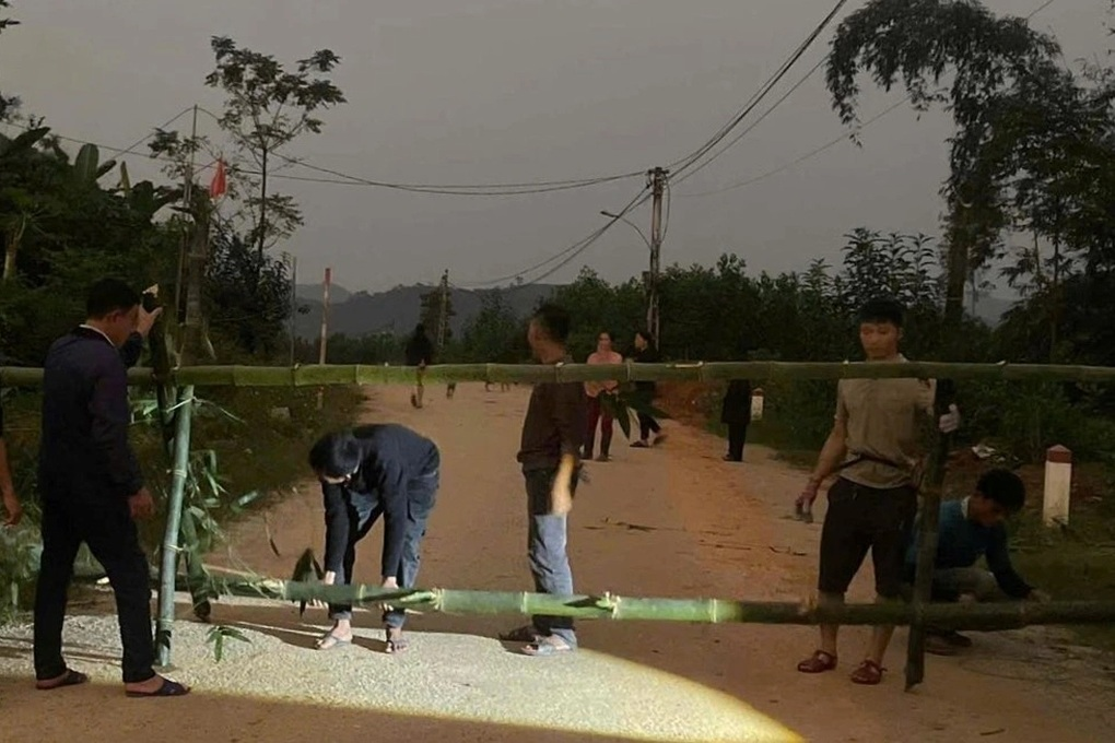 Lực lượng chức năng lập rào chắn, cấm đường (Ảnh: Văn Nguyễn).
