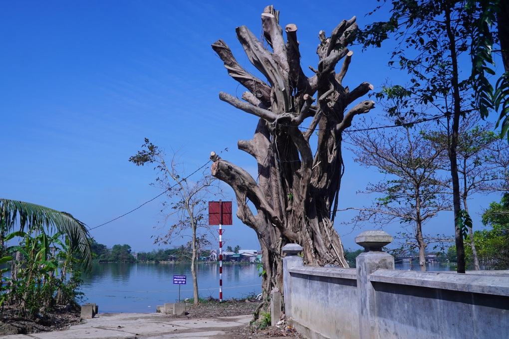 Cây bồ đề cổ thụ ở đình làng Lại Ân bị cưa trụi cành khi sắp đến Tết Nguyên đán (Ảnh: Sơn Thùy).