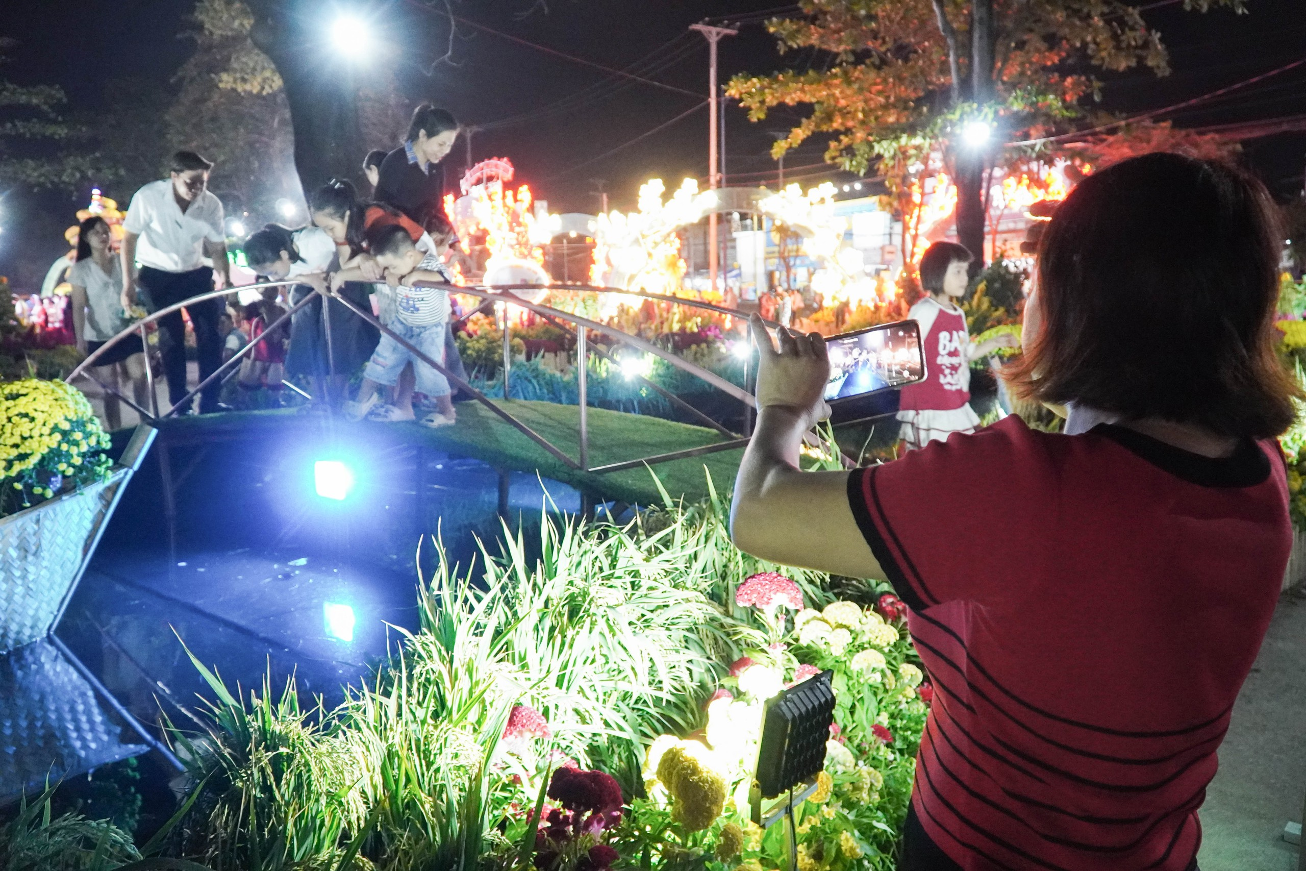 Trong ngày đầu tiên khai mạc, hội hoa xuân thu hút rất đông gia đình có trẻ nhỏ đến tham quan và chụp ảnh