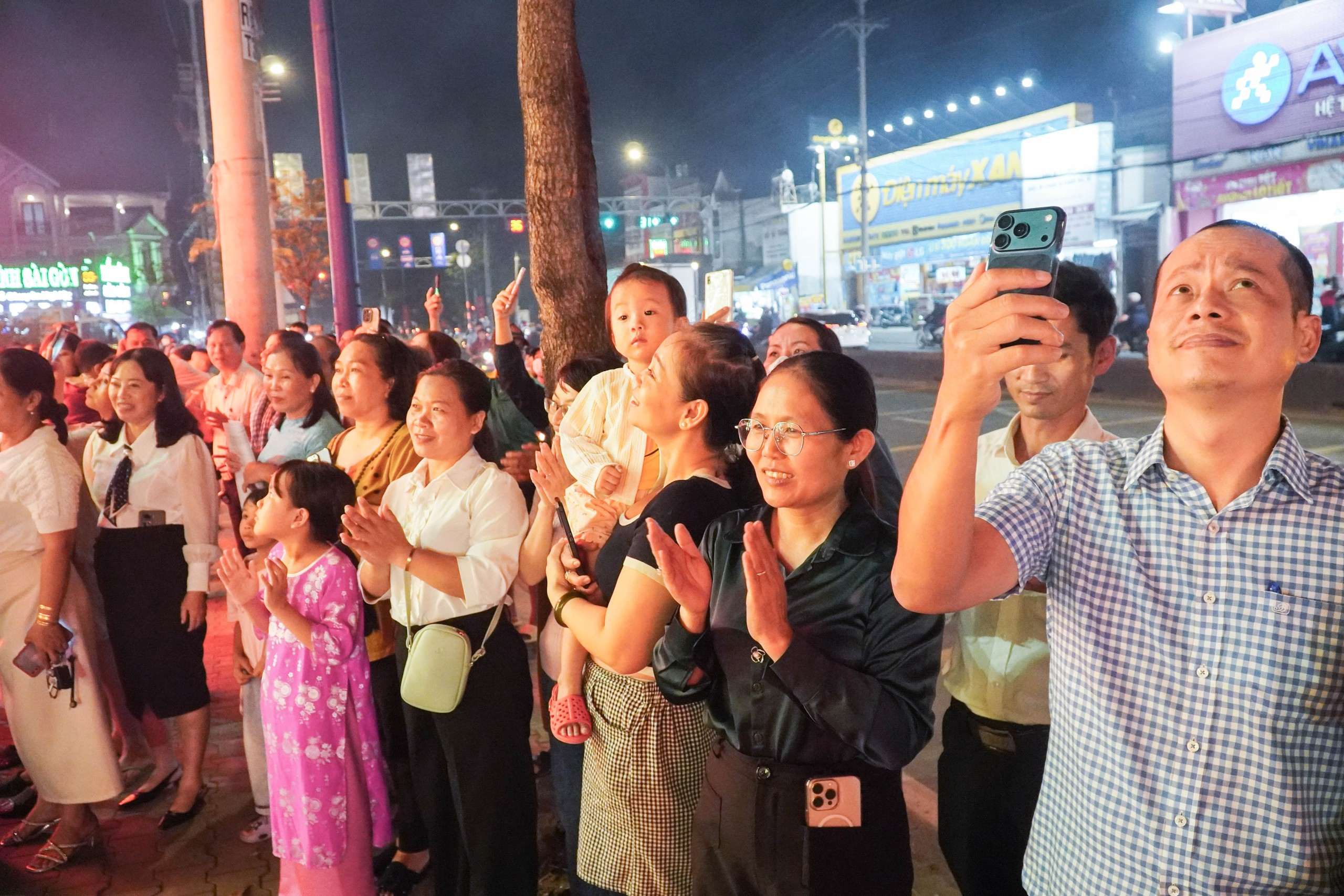 Người dân hào hứng chụp lại khoảnh khắc pháo hoa bừng sáng trong lễ khai mạc