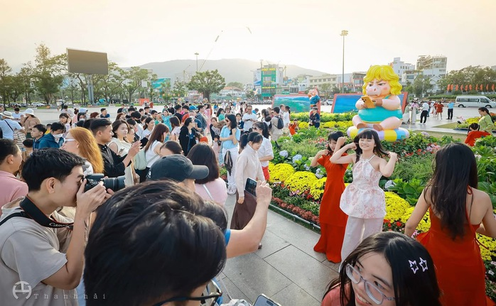 Quảng trường Nguyễn Tất Thành, phường Quy Nhơn thu hút nhiều người dân và du khách đến check-in những ngày cận Tết
