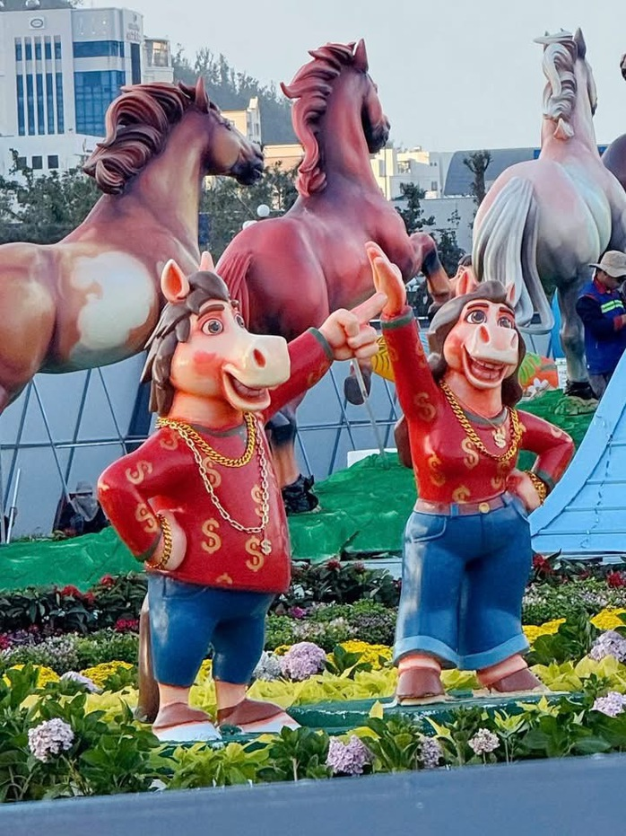 Linh vật ngựa “mặt cộc” cầm điện thoại bất ngờ gây bão mạng xã hội, kéo dòng người đổ về Quy Nhơn, tỉnh Gia Lai check-in những ngày cận Tết.