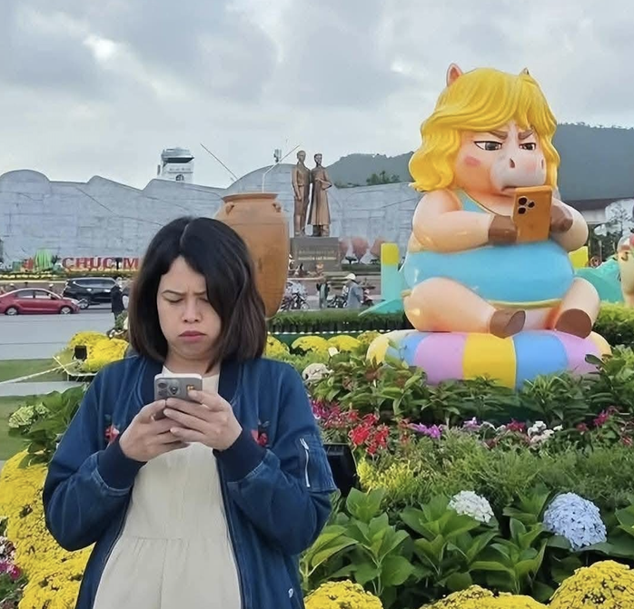 Điểm nhấn gây chú ý nhất là chú ngựa với gương mặt "mặt cộc", tay cầm chiếc điện thoại hiện đại được cư dân mạng ví von như "iPhone 17 Pro Max". Tạo hình hài hước, gần gũi nhanh chóng lan truyền mạnh trên các nền tảng mạng xã hội, kéo theo lượng người đến quảng trường tăng đột biến. Nhiều bạn trẻ còn bắt trend tạo dáng "mặt cộc" giống linh vật để ghi lại những khoảnh khắc vui nhộn.