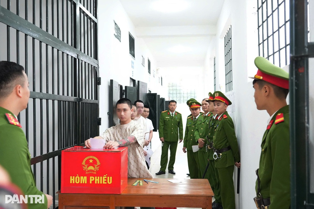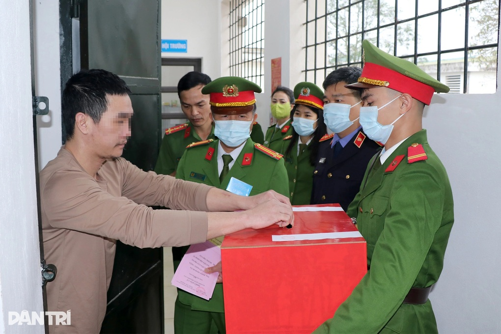 Hoàn tất công tác tổ chức bỏ phiếu tại điểm bầu cử tập trung, tổ bầu cử đã mang hòm phiếu đến bệnh xá của đơn vị và các buồng giam để cử tri thực hiện quyền của mình.