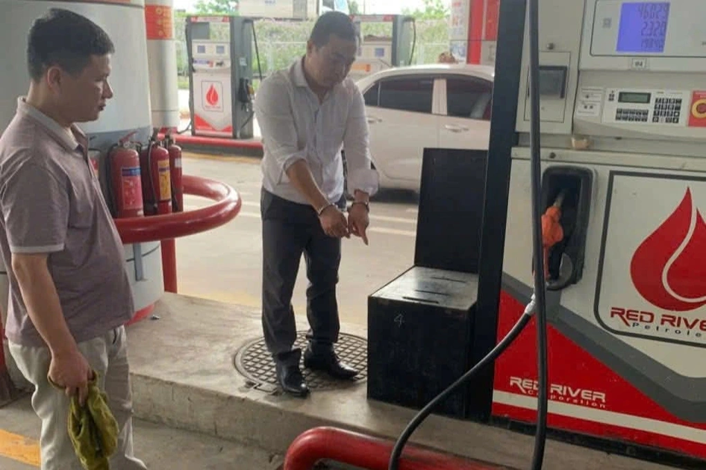 Nơi Hoàng (áo trắng) mua xăng (Ảnh: Công an Hà Nội).