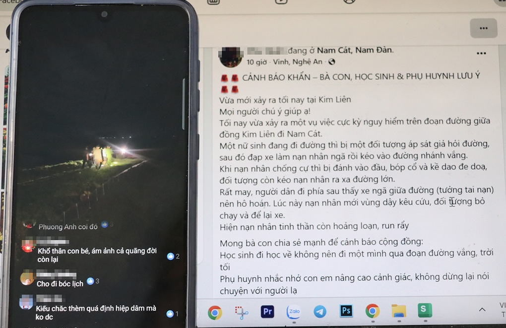 Thông tin đăng tải trên mạng xã hội về vụ việc nữ sinh bị một đối tượng tấn công trong đêm và kéo vào đường vắng, được chia sẻ chóng mặt.