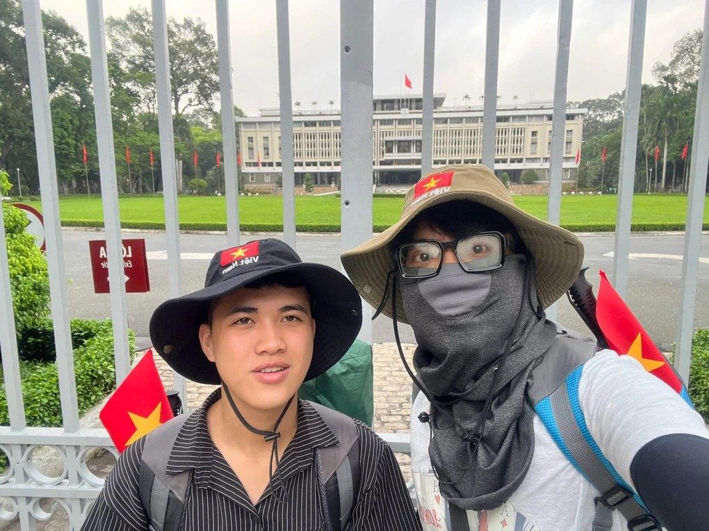 Đôi bạn bắt đầu hành trình từ Dinh Độc Lập (Ảnh: Nhân vật cung cấp).
