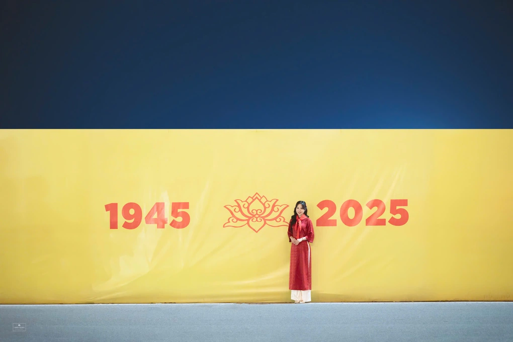 Những ngày cận kề Quốc khánh 2/9, khu vực Quảng trường Ba Đình (Hà Nội) nhộn nhịp hơn hẳn. Ngoài các hoạt động chuẩn bị cho lễ kỷ niệm, một chi tiết mới xuất hiện khiến nhiều người chú ý: Tấm biển khổ lớn in đậm dòng chữ "1945-2025" màu đỏ trên nền vàng rực rỡ.