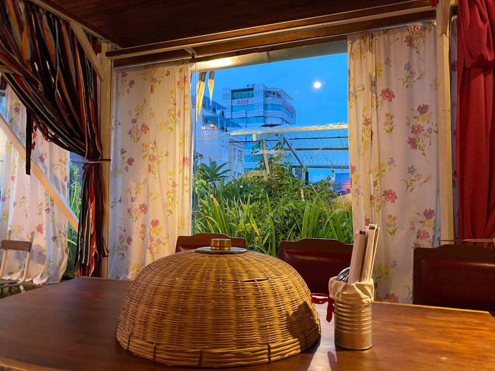 Không gian quán tĩnh lặng, giản dị. Giá đồ ăn dao động từ 150.000 đồng/món, đồ uống như nước ép từ 80.000 đồng đến 115.000 đồng/món.
