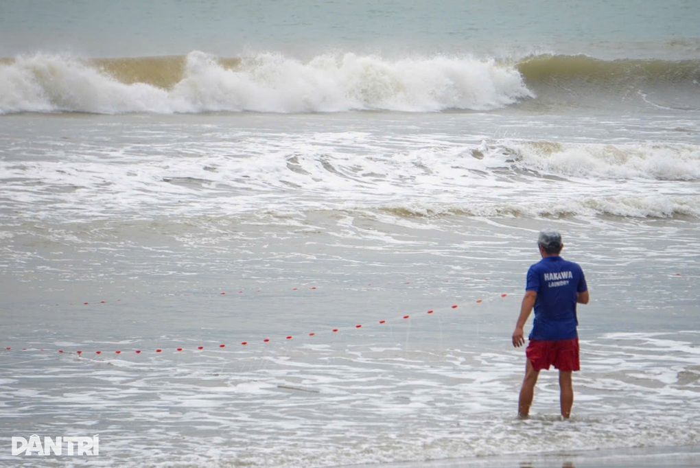 Ghi nhận tại bãi biển Mân Thái, khoảng 10h cùng ngày, nhiều ngư dân tranh thủ mang lưới ra biển để đánh cá. Có người lội ra ngoài khu vực sóng cao để giăng lưới.