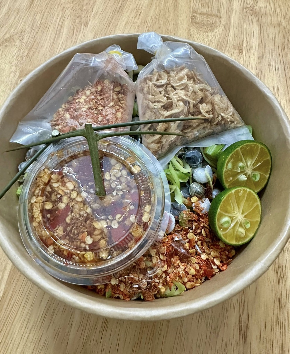 Một phần ốc lễ có kèm sẵn các loại gia vị để khách mang về tự trộn với giá từ 35.000 đồng (Ảnh: Trung Hiếu).